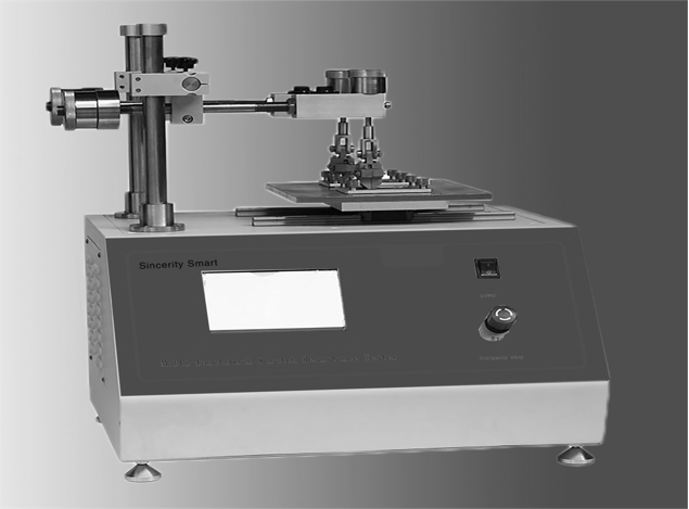 检测手表,钟表,玻璃等的耐刮擦及耐磨耗性能。液晶屏控制并显示试验过程,可根据用户需求设置往复磨耗次数,运动行程,往复运动速度等参数。的摩擦臂设计,实现不同摩擦头的替换。根据杠杆平衡原理控制压力的实施。充分满足不同标准对于摩擦形式、摩擦头、压力等的不同要求 测试样品被固定在水平的样品台上,在规定的磨料和负载下随着样品台的水平移动而被磨耗。测试臂的另一端配以砝码来保持测试臂的平衡,以确保样品表面负载的性。磨料和负载架高度可调,以适合不同高度样品的测试