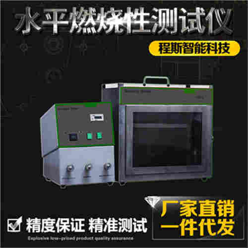 GB8410水平燃烧性测试仪简介 燃烧速率水平燃烧性测试仪通过测试燃烧一定距离所需要的时间获得材料燃烧时火焰蔓延的趋势及火焰蔓延速度,对产品可燃性进行分级,并以此评价材料的阻燃性能。用于检测纺织品特别是汽车内装饰织物的相对燃烧速率及阻燃性。可选择配备通风橱和灭火装置,实现完整燃烧试验。 测试原理 1.本设备提供一个有焰燃烧源,手动调节火焰值标准规定的高度,之后自动操作火焰点燃和熄灭。 2.火焰作用于样品时,观察记录燃烧现象。配合计时器进行燃烧的计时。 测试标准 此款水平燃烧测试仪符合但不仅限于下列标准: GB8410,QB/T 2729,ASTM D5132,SAE J369,FMVSS 302,ISO/NP 17074 ,ISO 3795,DIN 75200等标准。 技术规格 燃烧箱:W368mm×D216mm×H356mm; 地脚: 10mm; 通风孔:19mm×10; 排气窗:高度13mm; 观测窗宽度:330mm 样品架:255mm×200mm×170 mm U型样品夹:355×25×10 mm,内侧边距50mm; 支撑丝:φ0.25mm,耐高温金属丝; 支撑丝间距:25mm 本生灯:φ9.5mm; 温度计:150℃,精度小于1℃; 控制箱:390mm×200mm×390mm; 点燃时间:15s 计时:至0.1s 电源:220V,50Hz